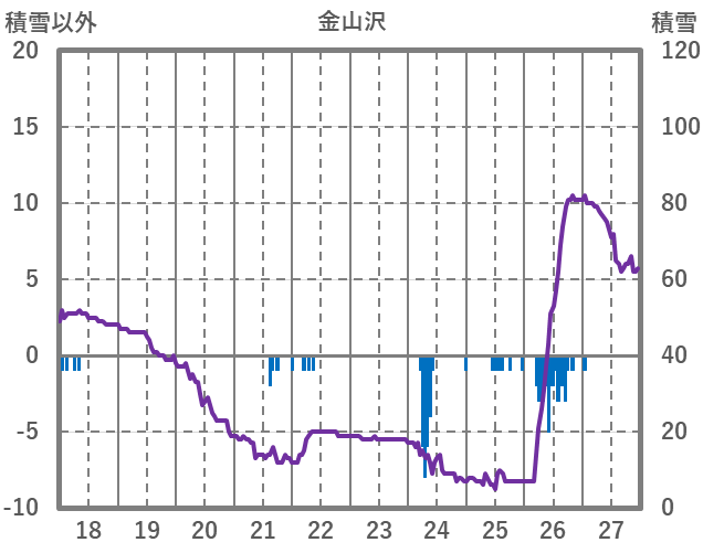 | 日 | 時 | 気温 | 降水 | 風向/風速 | 日照 | 積雪 | 降雪 |