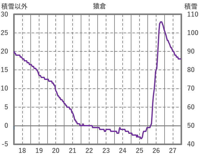 | 日 | 時 | 気温 | 降水 | 風向/風速 | 日照 | 積雪 | 降雪 |