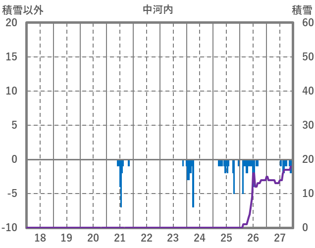 | 日 | 時 | 気温 | 降水 | 風向/風速 | 日照 | 積雪 | 降雪 |