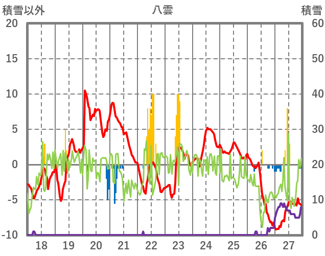 | 日 | 時 | 気温 | 降水 | 風向/風速 | 日照 | 積雪 | 降雪 |