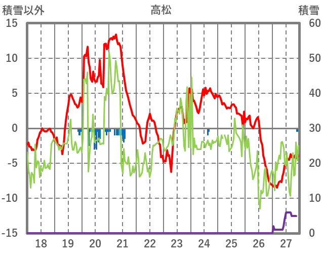 | 日 | 時 | 気温 | 降水 | 風向/風速 | 日照 | 積雪 | 降雪 |