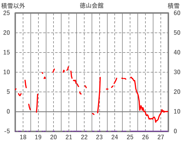 | 日 | 時 | 気温 | 降水 | 風向/風速 | 日照 | 積雪 | 降雪 |