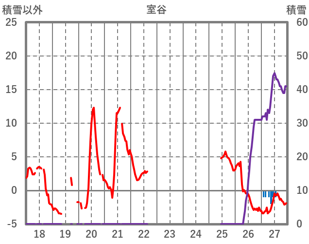 | 日 | 時 | 気温 | 降水 | 風向/風速 | 日照 | 積雪 | 降雪 |