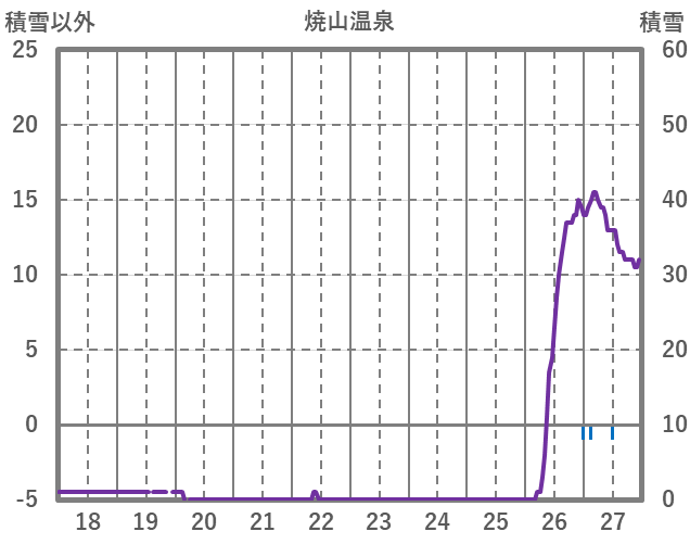 | 日 | 時 | 気温 | 降水 | 風向/風速 | 日照 | 積雪 | 降雪 |