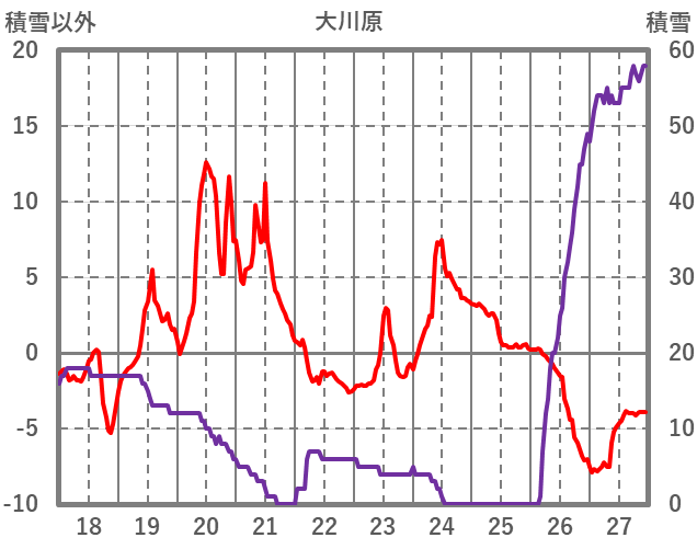 | 日 | 時 | 気温 | 降水 | 風向/風速 | 日照 | 積雪 | 降雪 |