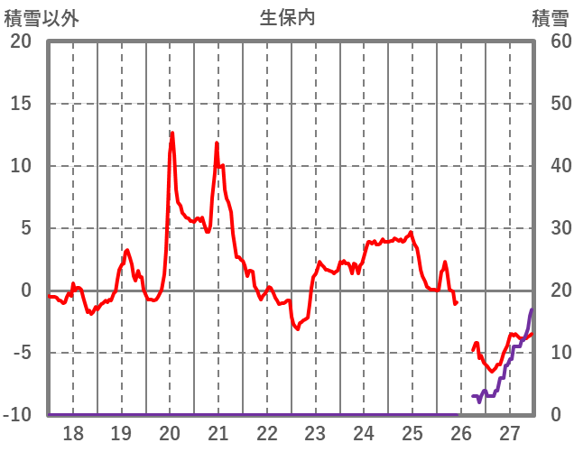 | 日 | 時 | 気温 | 降水 | 風向/風速 | 日照 | 積雪 | 降雪 |