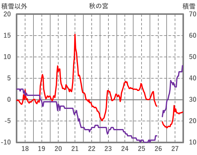 | 日 | 時 | 気温 | 降水 | 風向/風速 | 日照 | 積雪 | 降雪 |