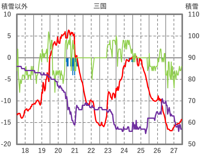 | 日 | 時 | 気温 | 降水 | 風向/風速 | 日照 | 積雪 | 降雪 |
