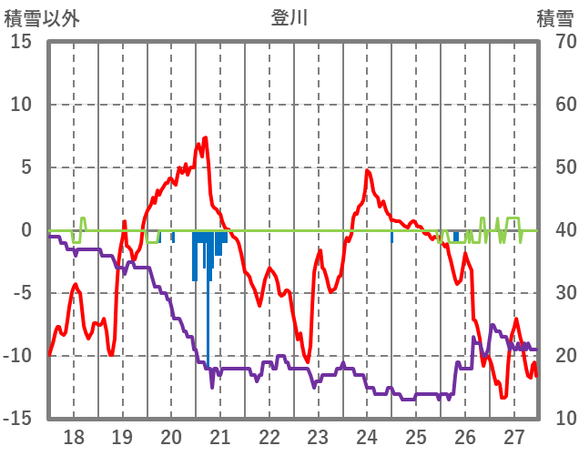| 日 | 時 | 気温 | 降水 | 風向/風速 | 日照 | 積雪 | 降雪 |