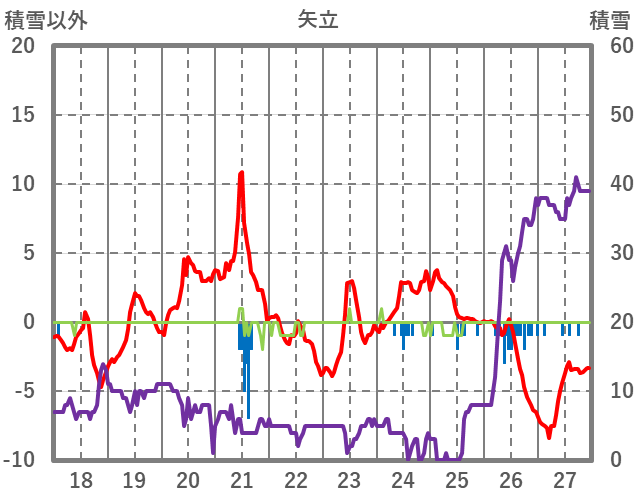 | 日 | 時 | 気温 | 降水 | 風向/風速 | 日照 | 積雪 | 降雪 |