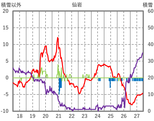 | 日 | 時 | 気温 | 降水 | 風向/風速 | 日照 | 積雪 | 降雪 |