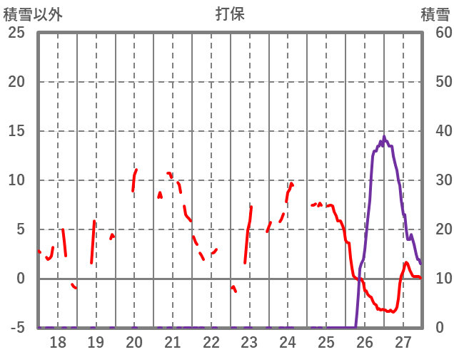 | 日 | 時 | 気温 | 降水 | 風向/風速 | 日照 | 積雪 | 降雪 |