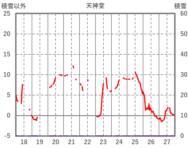 | 日 | 時 | 気温 | 降水 | 風向/風速 | 日照 | 積雪 | 降雪 |
