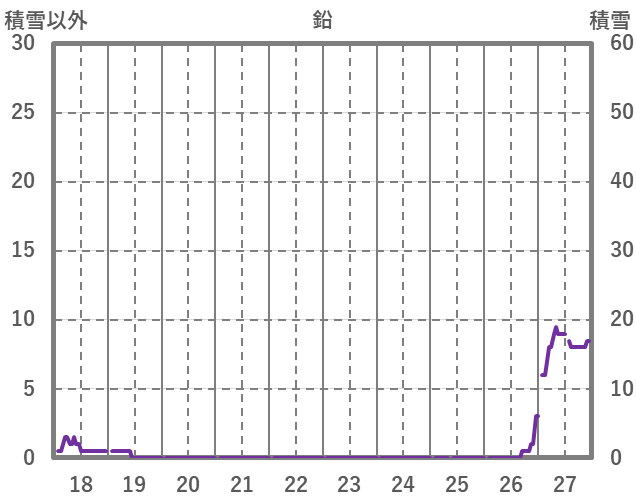 | 日 | 時 | 気温 | 降水 | 風向/風速 | 日照 | 積雪 | 降雪 |