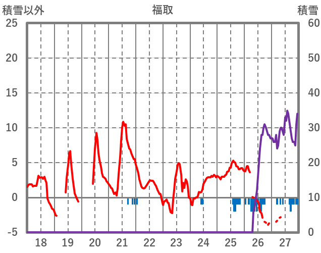 | 日 | 時 | 気温 | 降水 | 風向/風速 | 日照 | 積雪 | 降雪 |