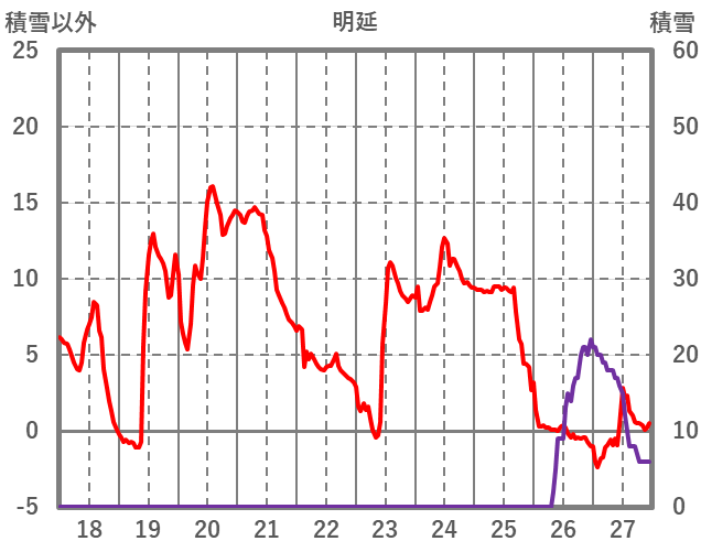 | 日 | 時 | 気温 | 降水 | 風向/風速 | 日照 | 積雪 | 降雪 |