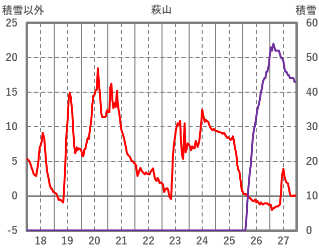 | 日 | 時 | 気温 | 降水 | 風向/風速 | 日照 | 積雪 | 降雪 |