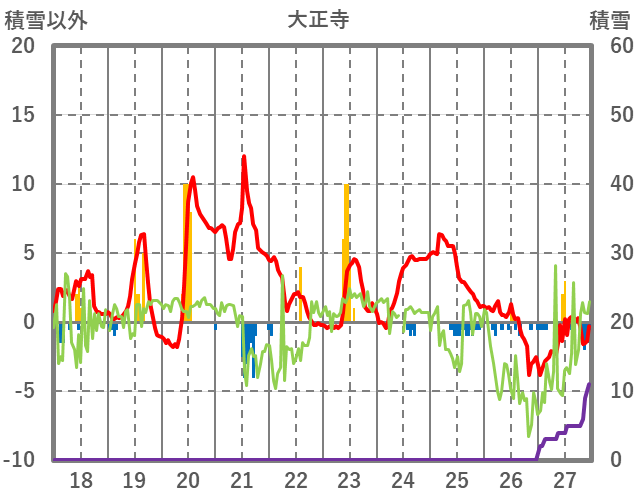 | 日 | 時 | 気温 | 降水 | 風向/風速 | 日照 | 積雪 | 降雪 |