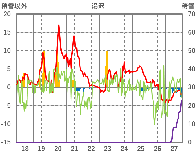 | 日 | 時 | 気温 | 降水 | 風向/風速 | 日照 | 積雪 | 降雪 |