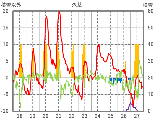 | 日 | 時 | 気温 | 降水 | 風向/風速 | 日照 | 積雪 | 降雪 |