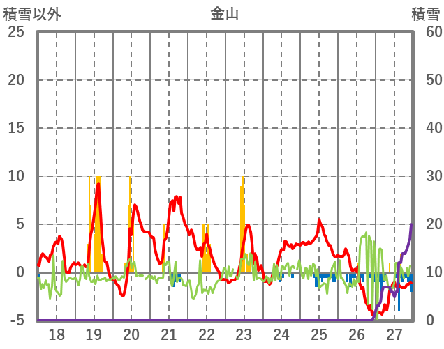 | 日 | 時 | 気温 | 降水 | 風向/風速 | 日照 | 積雪 | 降雪 |