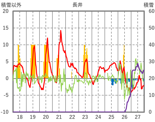 | 日 | 時 | 気温 | 降水 | 風向/風速 | 日照 | 積雪 | 降雪 |