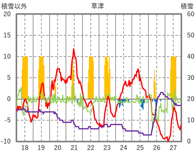 | 日 | 時 | 気温 | 降水 | 風向/風速 | 日照 | 積雪 | 降雪 |