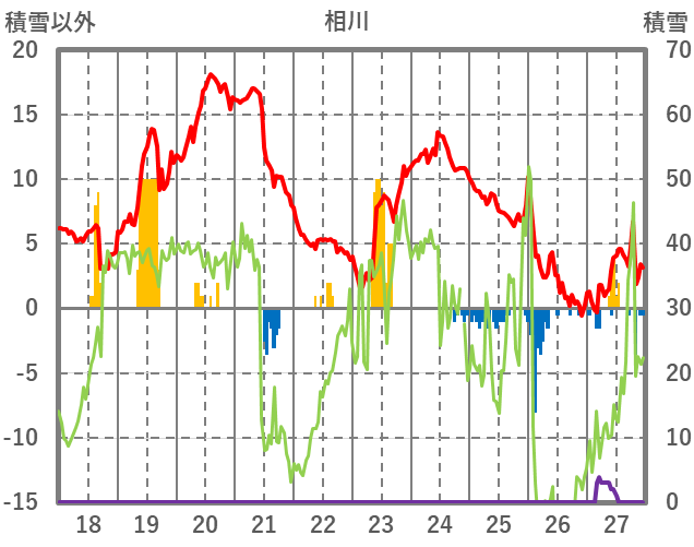 | 日 | 時 | 気温 | 降水 | 風向/風速 | 日照 | 積雪 | 降雪 |
