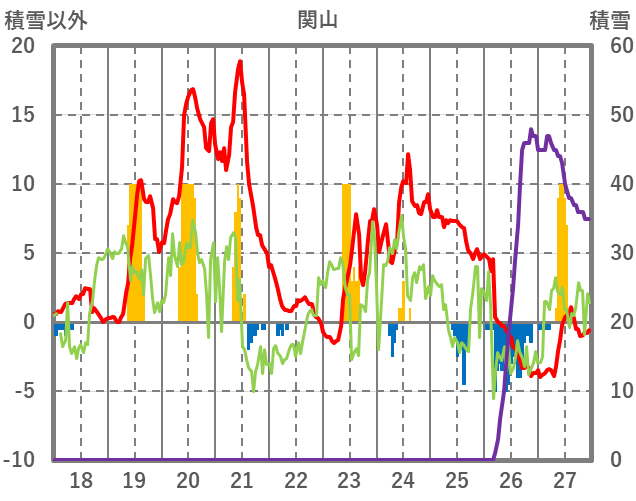 | 日 | 時 | 気温 | 降水 | 風向/風速 | 日照 | 積雪 | 降雪 |