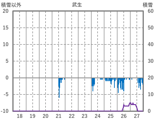 | 日 | 時 | 気温 | 降水 | 風向/風速 | 日照 | 積雪 | 降雪 |