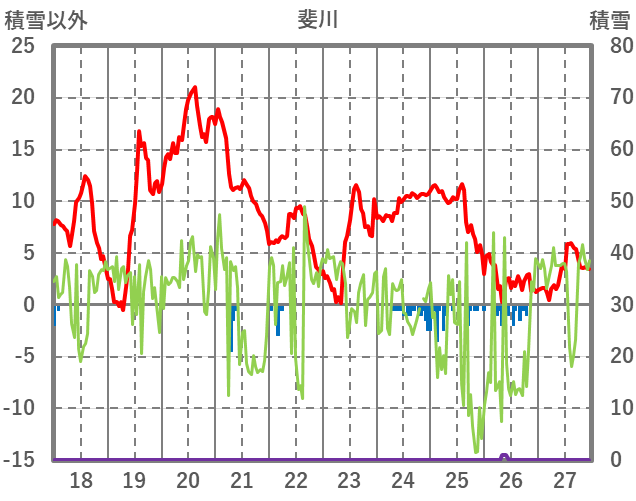 | 日 | 時 | 気温 | 降水 | 風向/風速 | 日照 | 積雪 | 降雪 |