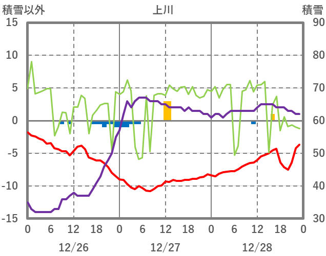 | 日 | 時 | 気温 | 降水 | 風向/風速 | 日照 | 積雪 | 降雪 |