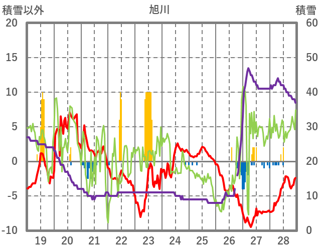 | 日 | 時 | 気温 | 降水 | 風向/風速 | 日照 | 積雪 | 降雪 |