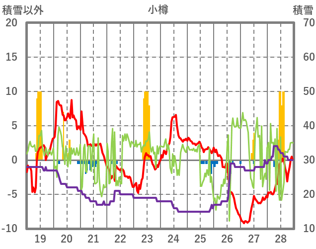 | 日 | 時 | 気温 | 降水 | 風向/風速 | 日照 | 積雪 | 降雪 |