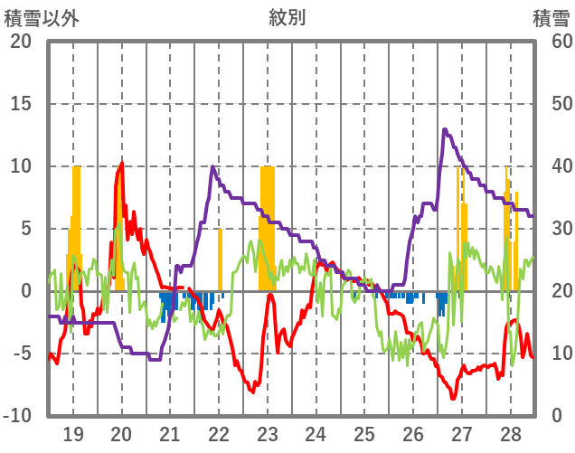 | 日 | 時 | 気温 | 降水 | 風向/風速 | 日照 | 積雪 | 降雪 |
