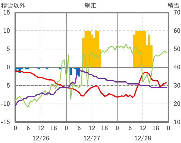 | 日 | 時 | 気温 | 降水 | 風向/風速 | 日照 | 積雪 | 降雪 |