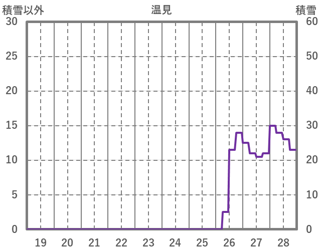 | 日 | 時 | 気温 | 降水 | 風向/風速 | 日照 | 積雪 | 降雪 |