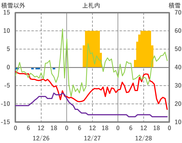 | 日 | 時 | 気温 | 降水 | 風向/風速 | 日照 | 積雪 | 降雪 |
