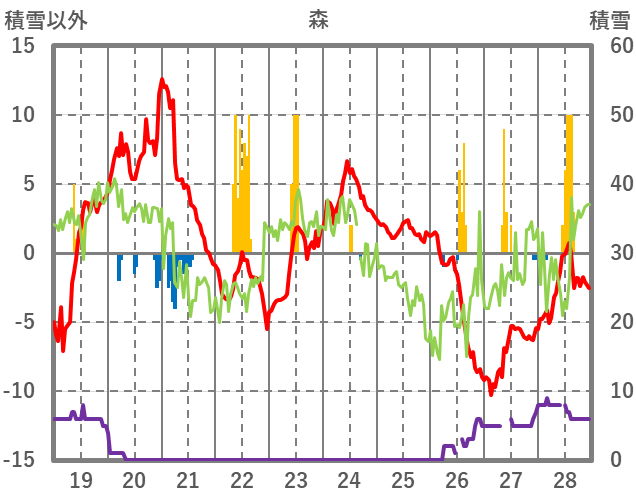 | 日 | 時 | 気温 | 降水 | 風向/風速 | 日照 | 積雪 | 降雪 |