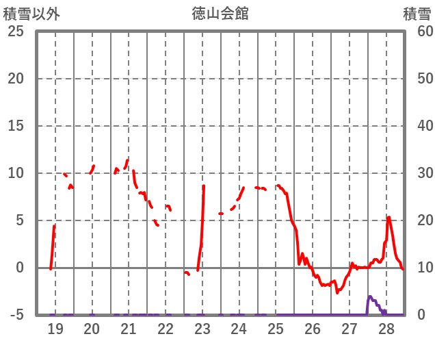 | 日 | 時 | 気温 | 降水 | 風向/風速 | 日照 | 積雪 | 降雪 |