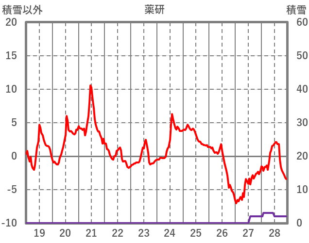 | 日 | 時 | 気温 | 降水 | 風向/風速 | 日照 | 積雪 | 降雪 |