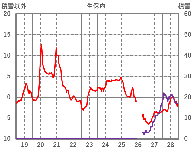 | 日 | 時 | 気温 | 降水 | 風向/風速 | 日照 | 積雪 | 降雪 |