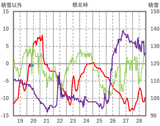 | 日 | 時 | 気温 | 降水 | 風向/風速 | 日照 | 積雪 | 降雪 |