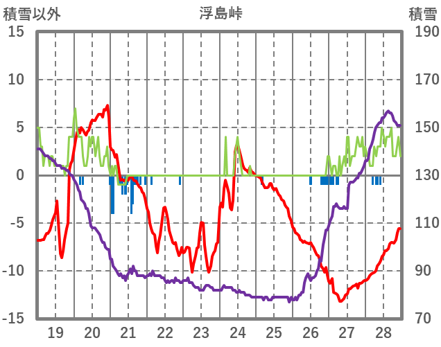 | 日 | 時 | 気温 | 降水 | 風向/風速 | 日照 | 積雪 | 降雪 |
