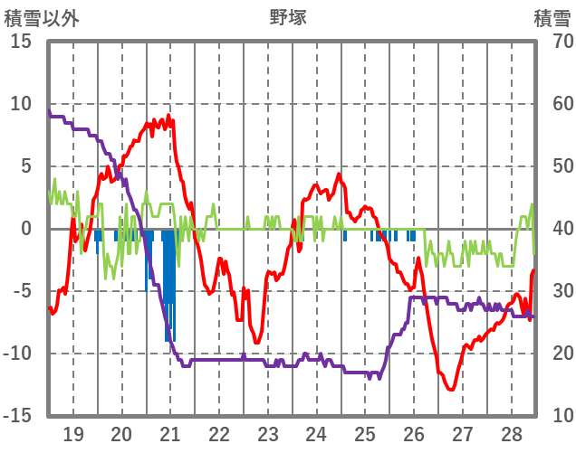 | 日 | 時 | 気温 | 降水 | 風向/風速 | 日照 | 積雪 | 降雪 |