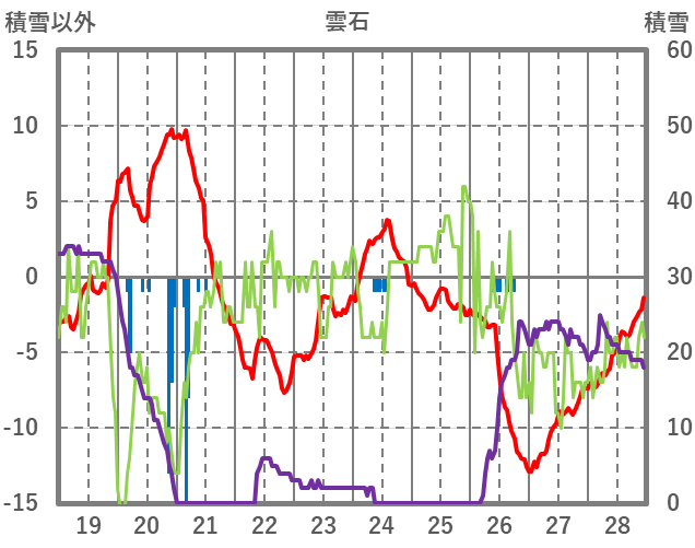 | 日 | 時 | 気温 | 降水 | 風向/風速 | 日照 | 積雪 | 降雪 |