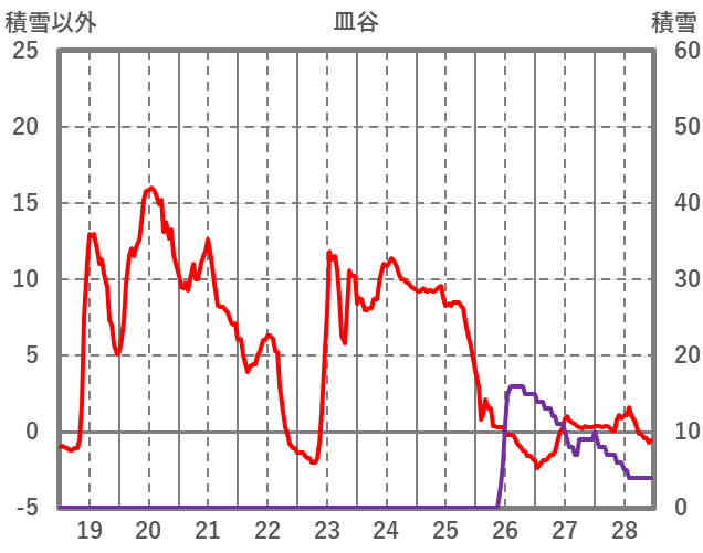 | 日 | 時 | 気温 | 降水 | 風向/風速 | 日照 | 積雪 | 降雪 |
