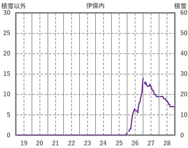 | 日 | 時 | 気温 | 降水 | 風向/風速 | 日照 | 積雪 | 降雪 |