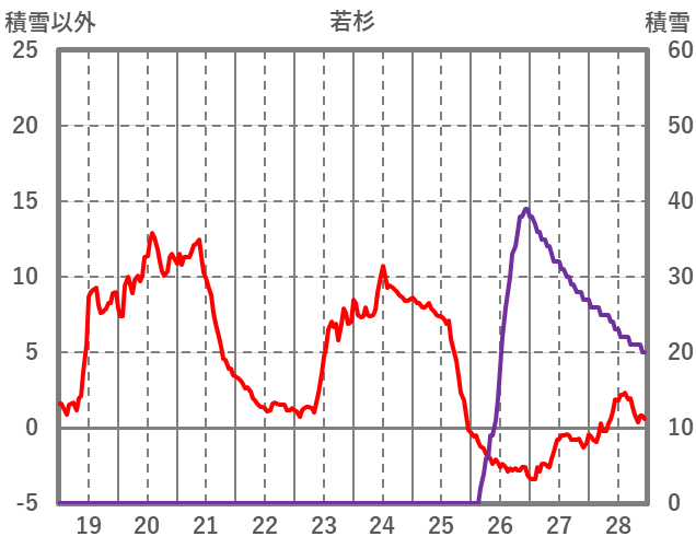 | 日 | 時 | 気温 | 降水 | 風向/風速 | 日照 | 積雪 | 降雪 |