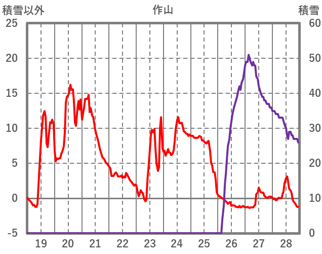 | 日 | 時 | 気温 | 降水 | 風向/風速 | 日照 | 積雪 | 降雪 |